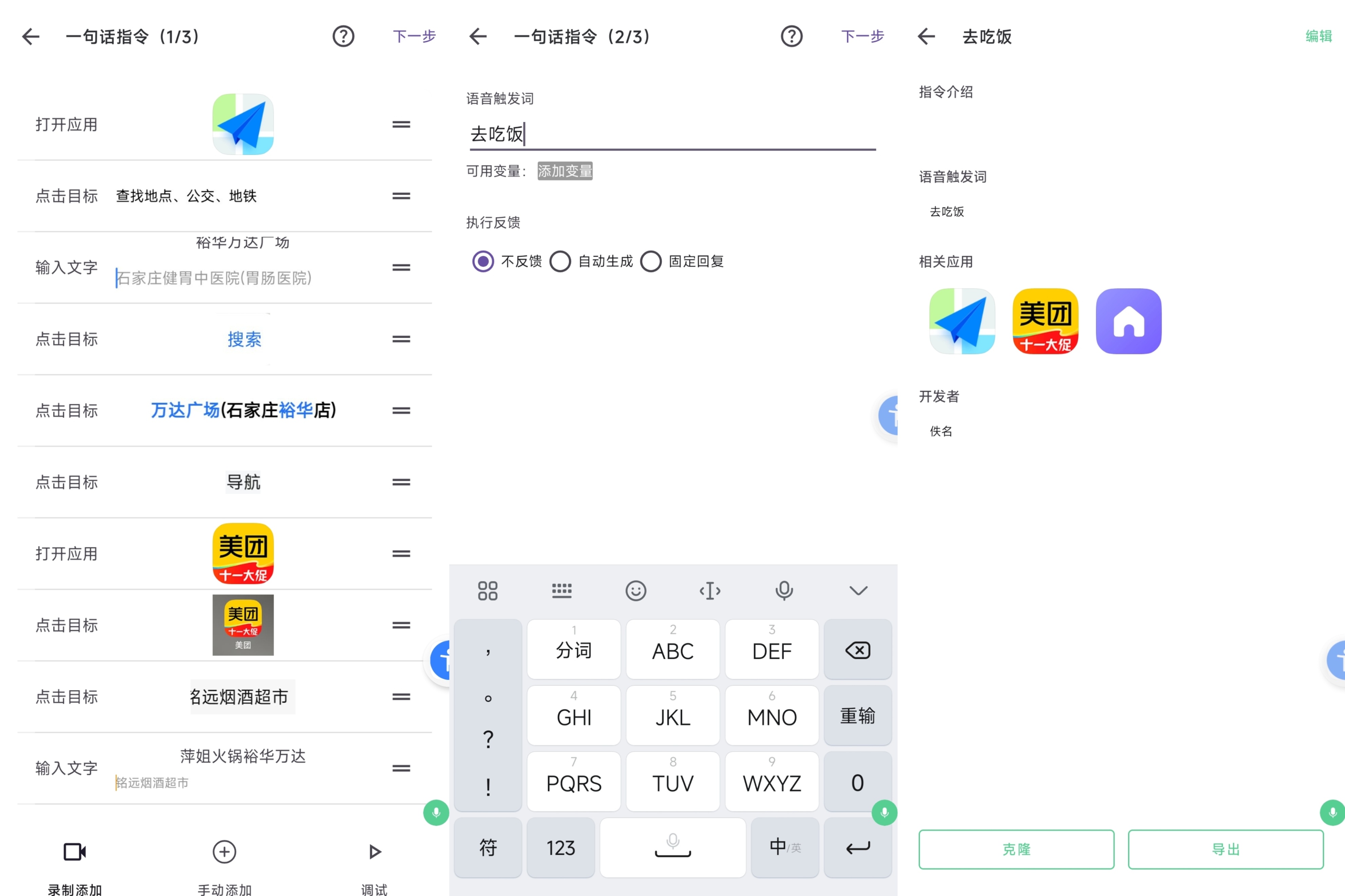 煎饺App其实不单单是简单的执行语音指令,一顿操作下来,可以深切感受到煎饺App的核心执行力在于一套操作下来可“跨应用的复杂联动”,意思也就是把需要执行的日常多步骤操作流程,简化成一句话让煎饼App给你执行,比如涵盖日常的购物,导航,智能场景执行等。