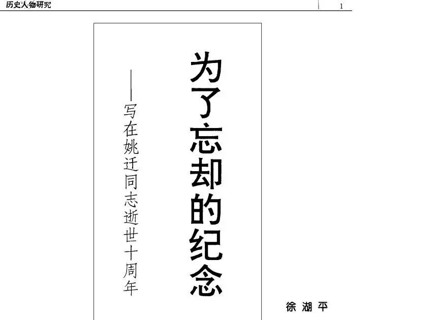 1994年姚迁十周年祭,徐湖平在《东南文化》发表《为了忘却的记念》的纪念文章。