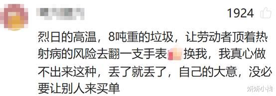 还有一些网友称,烈日下气温那么高,八吨垃圾啊,让环卫工人冒着得热射病的风险去翻一只手表。