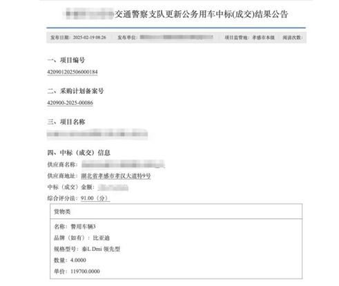 在政府采购中,比亚迪已成 “高频面孔”。安徽合肥、辽宁锦州、陕西西安等多地公安采购了秦 PLUS、宋 Pro 等车型,应用于巡逻、侦查等场景。