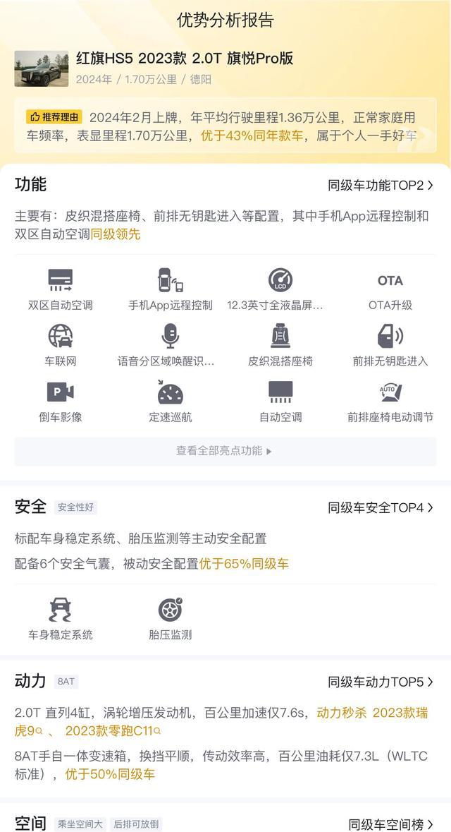 实际上,当我们对比红旗HS5与其他同级别车型时,其竞争优势愈发明显。以德阳市场为例,红旗HS5的二手车市场价格在12.62万至14.77万之间,售价在合理范围内。而相对某些进口和合资SUV,其售价往往在20万元以上,这使得红旗HS5的性价比更具吸引力。当前市场中,红旗HS5定位为中型豪华SUV,既保证了品质和配置上的优势,又在价格上相对亲民,显然符合了众多家庭消费者的需求。