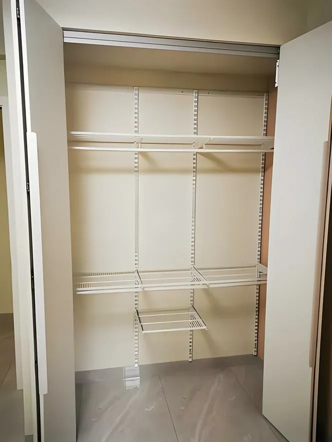 在推拉门下方安装轨道,可以有效地将衣柜内外隔离,防止外部灰尘进入衣柜内部。