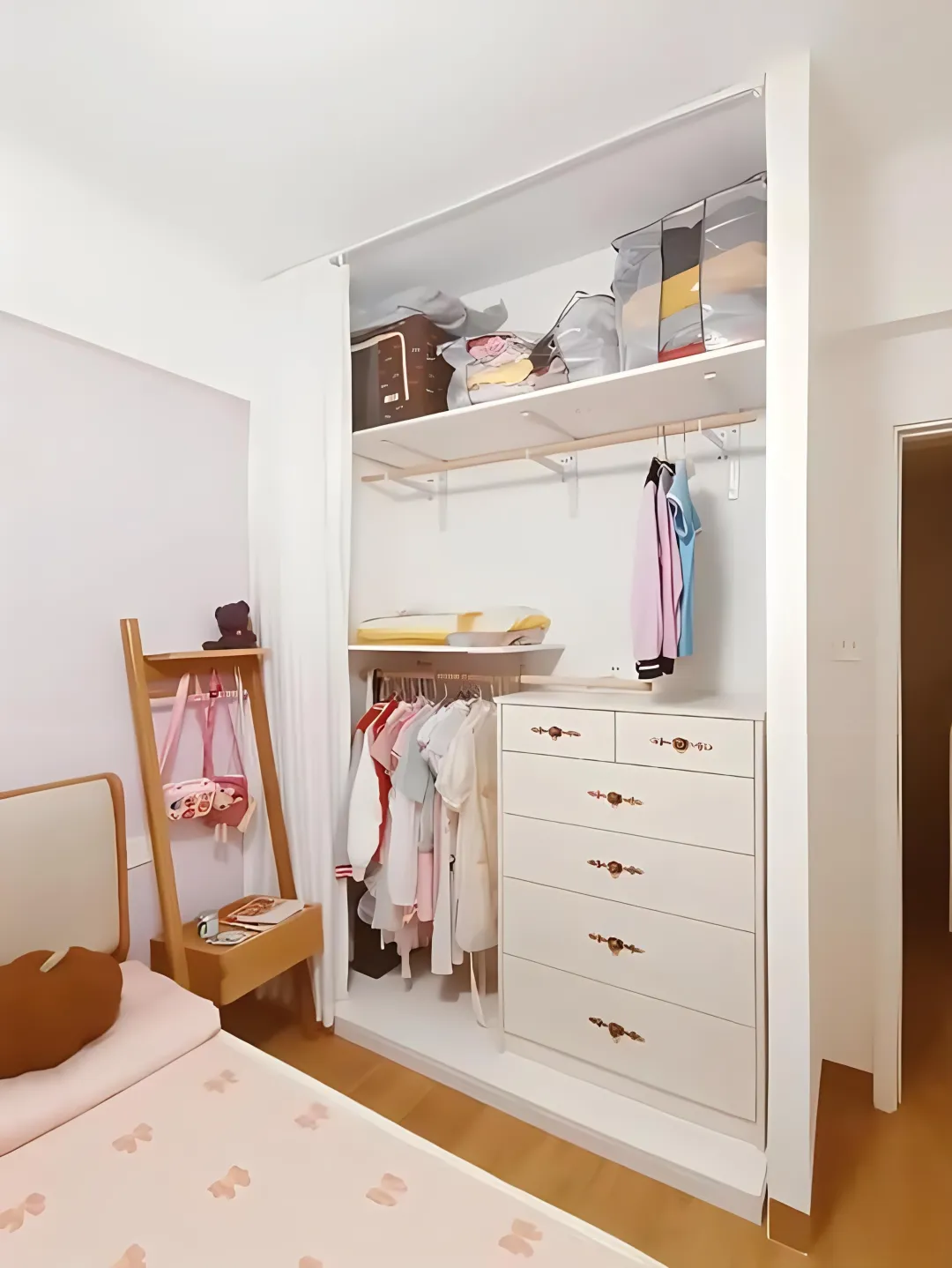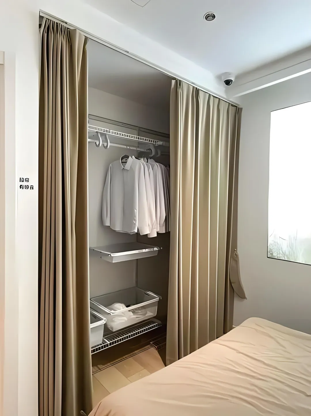 这是一种成本最低的衣柜设计方案之一,特别适合户型小的住宅。