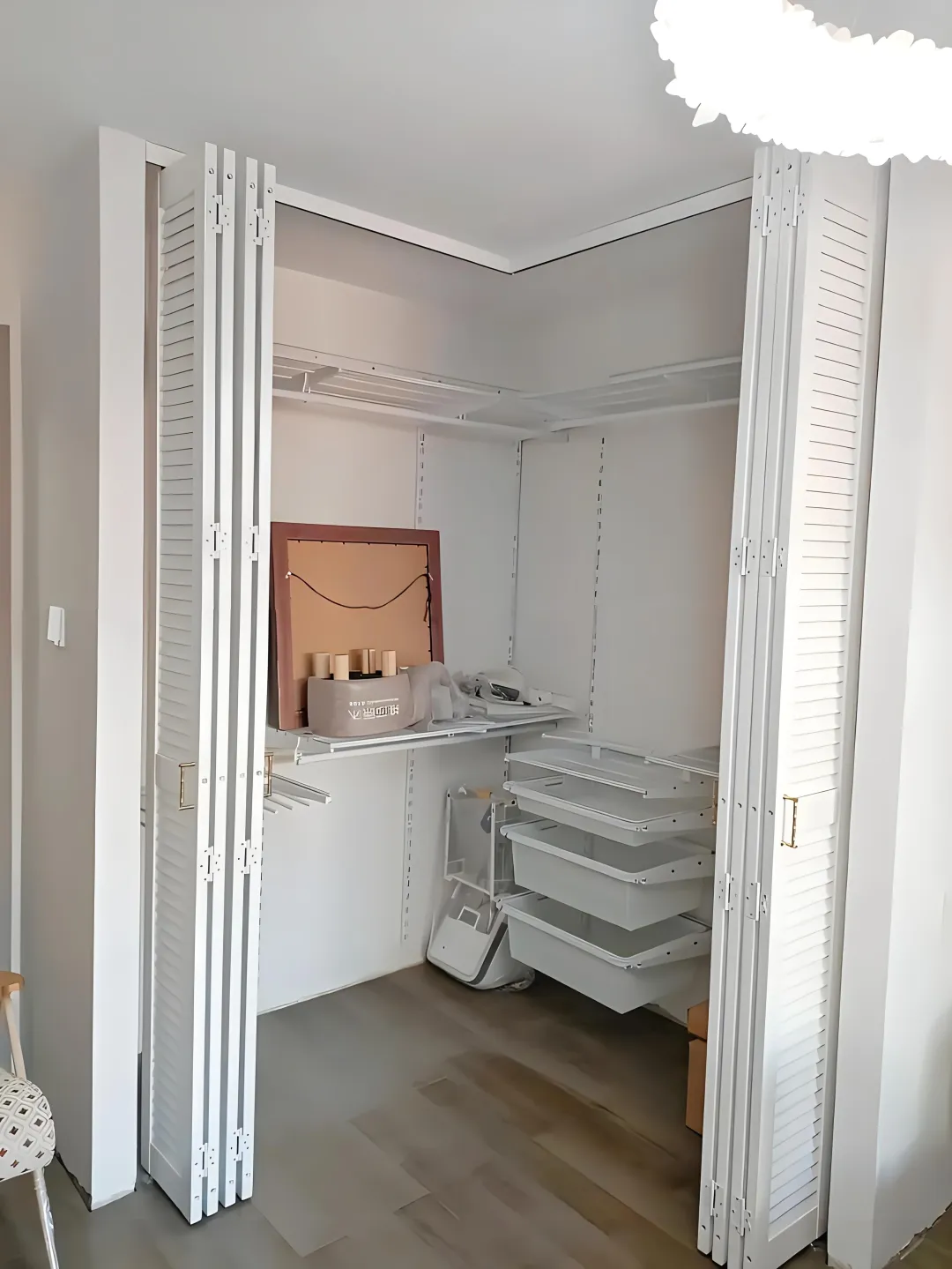 为了减少“积灰”的问题,我建议根据空间大小选择定制的折叠门或平开门。