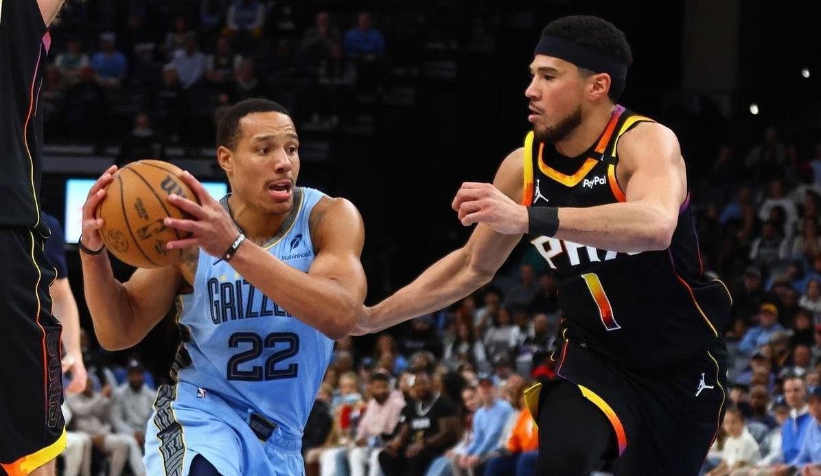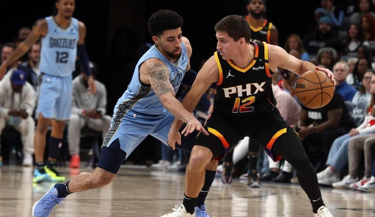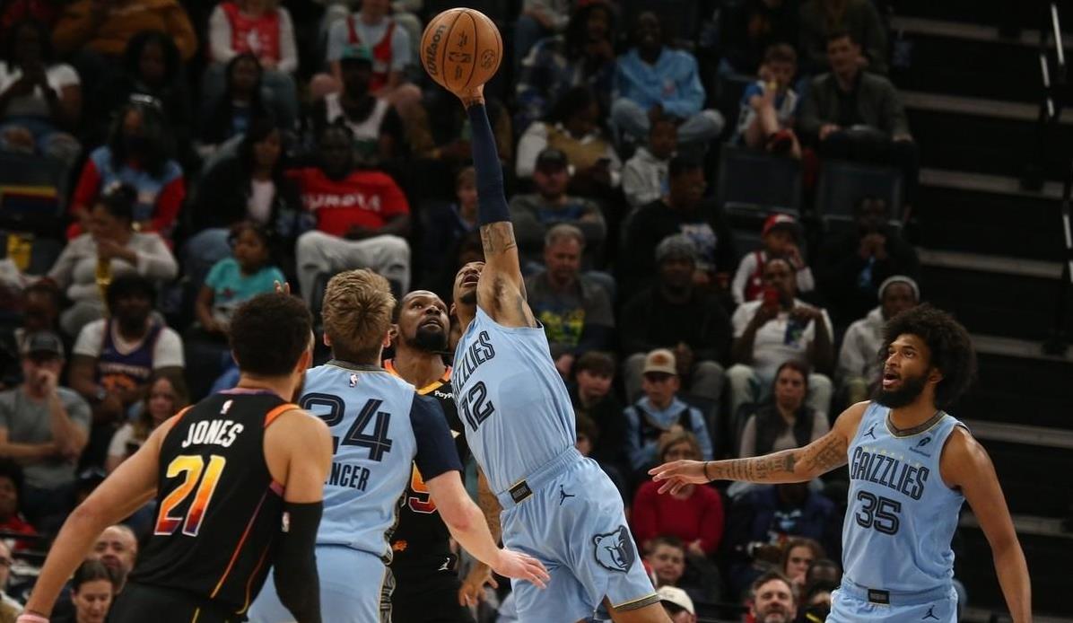 太阳对阵残阵灰熊,NBA常规赛进行中,太阳和灰熊均连战两场。灰熊队克拉克、杰克逊、阿尔达玛、扎克-伊迪四名内线球员缺阵,只剩莫兰特和贝恩两名后卫。