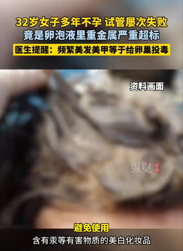 2025年5月,宁波的陈女士蹲在医院走廊,手里攥着第三次试管婴儿失败的检查单,眼泪止不住地往下掉。结婚5年,她怎么也想不到,自己才32岁,卵巢却像40岁般衰老,取出的卵子总是质量堪忧。直到医生的一句话点醒了她:“你卵泡液里的镉浓度超标3倍,和频繁染发有关吧?”