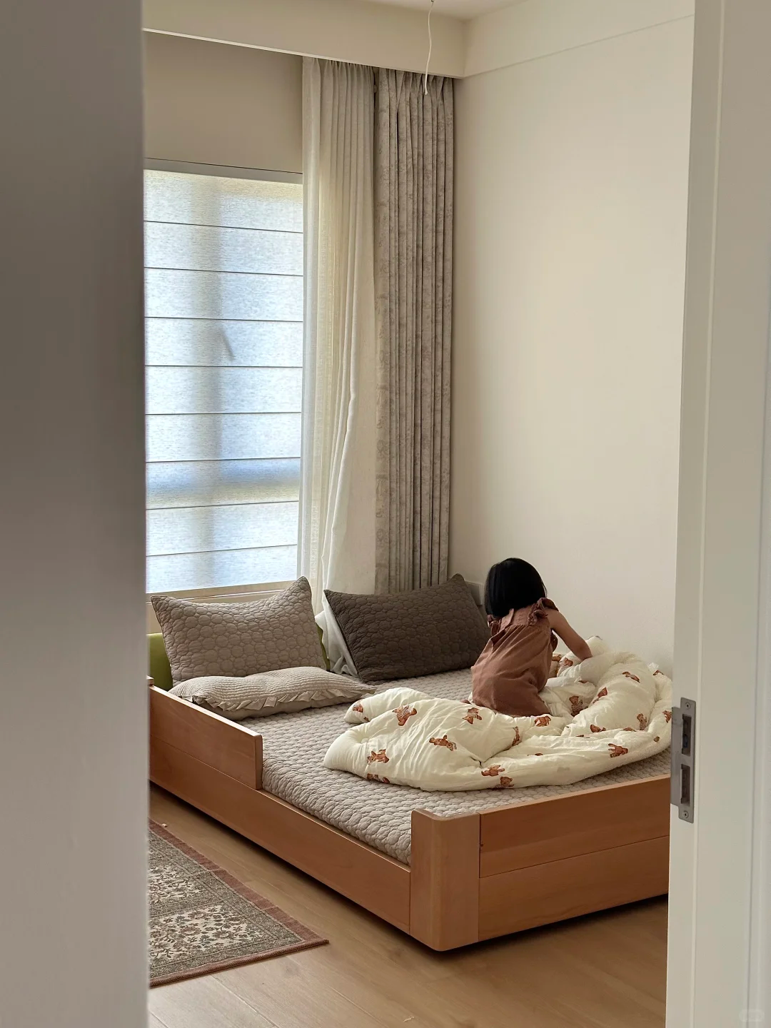 这个时候也可以打开窗户,让空气流通,然后我们去洗漱、吃早饭,然后再反回来把被子叠好就可以了。