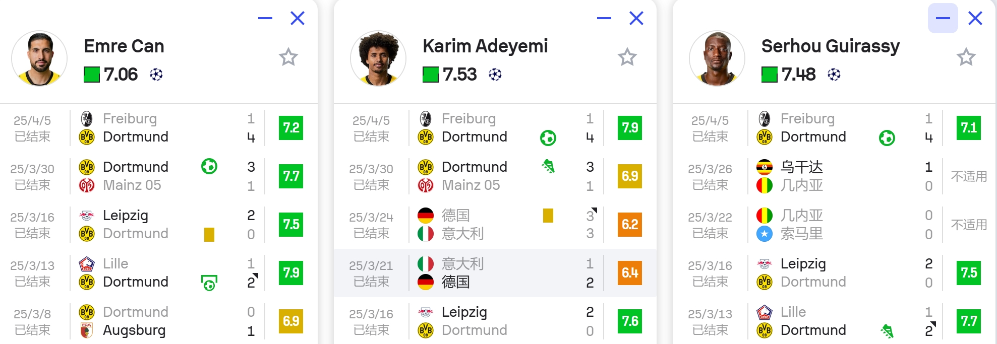 多特:格罗斯停赛、本塞拜尼、塞比策、聚勒以及施洛特别克都是近期出现的伤病,多特中后场可以说是全军覆没,即战力严重不足,后手更是捉襟见肘。