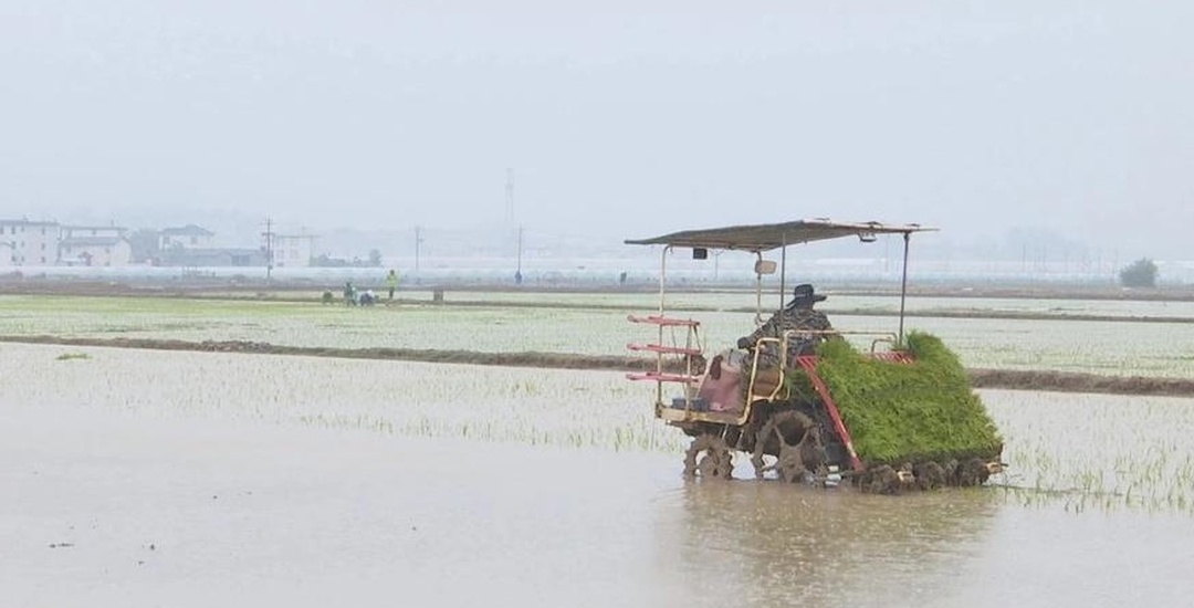 冬天到了大棚稻米要保暖,覆盖棉被加增温,安全越冬有保障