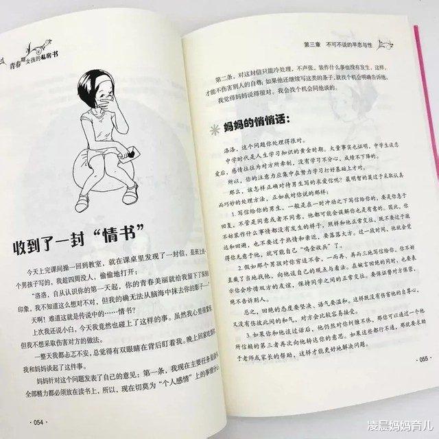 这位妈妈说,有次跟女儿在被窝里说悄悄话,她才知道,女儿通过看这本“小说”书,对青春期的一些特殊变化,有了进一步了解,不那么迷茫了。
