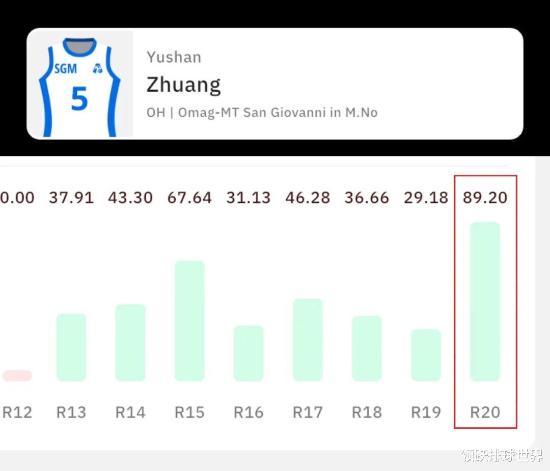 这也是庄宇珊本赛季评分的最高纪录,回顾她自第12轮以来的梦幻联赛表现数据曲线,R12缺席,R13至R19稳定评分在30至60分区间,而在本轮R20爆发突破89.20分,可谓一路攀升,节节高升,该项数据大致可以理解为球迷在FantaLVF的队员交易里面,更多人选择了庄宇珊作为自己球队的主力之一。