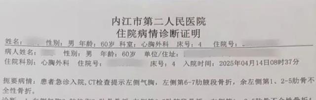 经检查,大爷不仅全身肋骨断了7根,还有气胸,肺挫伤等严重伤势!