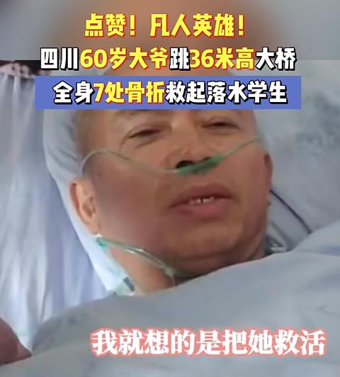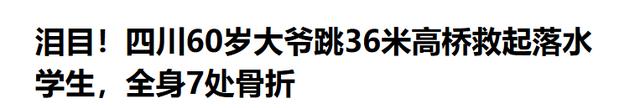 一位60岁的大爷纵身一跃,从36米高的大桥跳入水中,只为救一名溺水学生。