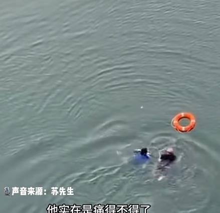 当大爷落入水中的那一刻,巨大的冲击力让他受伤,整个人都在颤抖。