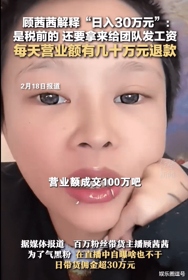 二、争议漩涡:炫富、价值观与税务炸弹1. “凡尔赛式暴富”激怒打工人顾茜茜晒出的数据堪称震撼:近七日两平台成交额合计超1900万,单日佣金30万。面对“炫富”指责,她强硬回击:“一没偷二没抢,都是辛苦钱!”7 但网友并不买账:“普通人996月薪五千,你躺赚30万还喊辛苦?”