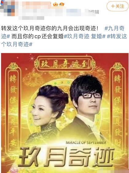以往没到九月份,就会有网友发出图片,并配文“转发这个玖月奇迹,九月就会有奇迹”