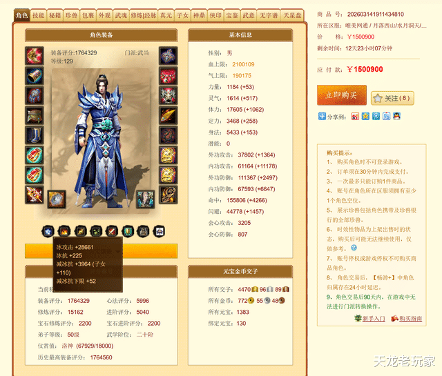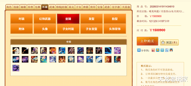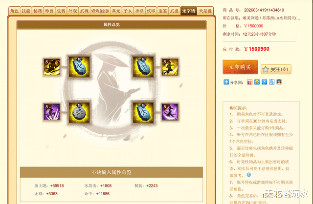 而如今点杀的【凤凰山】服务器的176万评分三进阶大武当,再次上架: