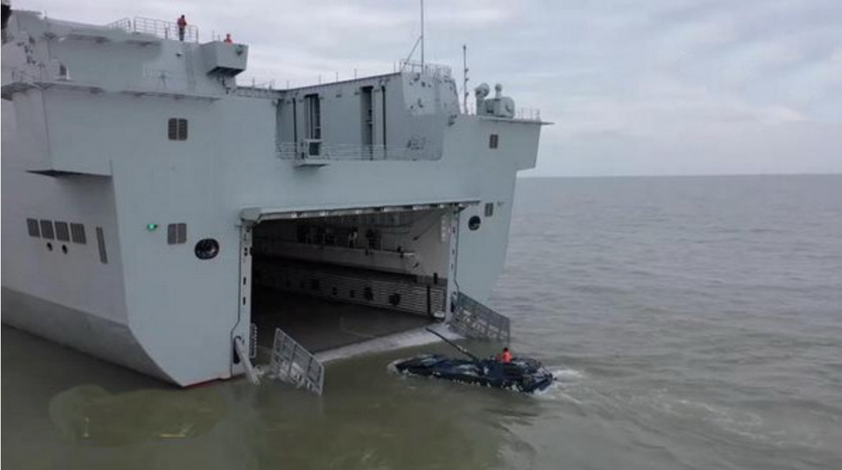 此外,舰上部署有4艘能搭载99A主战坦克的高速气垫登陆艇、数十辆两栖装甲战车、上千名全副武装的步兵或者海军陆战队员和数百吨作战物资等,拥有强大的航空作业和立体登陆作战能力。