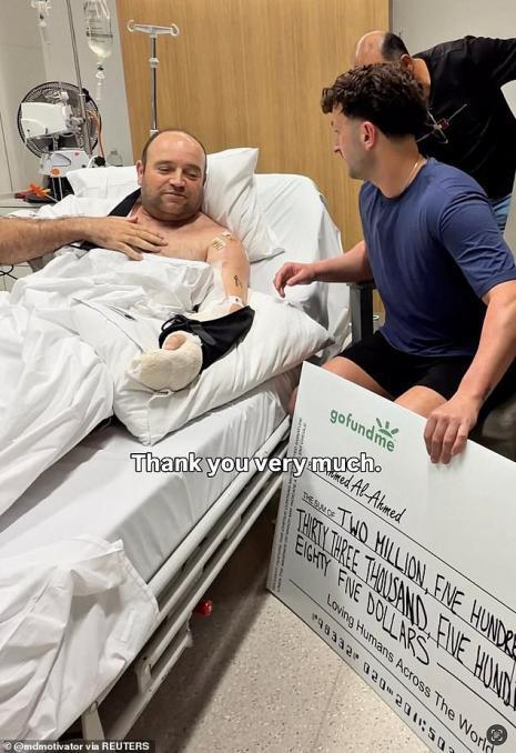 事件录像使阿尔·艾哈迈德先生被誉为全球英雄,并引发了一场在线募捐,筹集了250万澳元(1176.92万人民币)。这笔款项已于上周在医院赠予他。