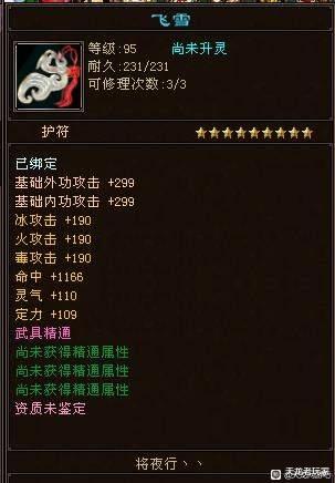楼下这个九星飞雪距离191属性只有一步之遥:冰火毒三属性190、命中、灵气、定力!