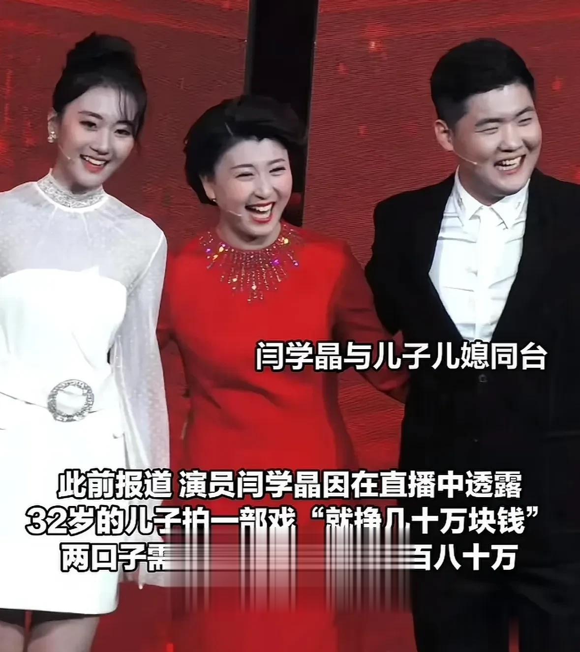 那天,闫学晶老师大概觉得自己是在跟老街坊唠家常,想卖卖惨,博个同情。她皱着眉头,一脸愁容地说:“我儿子32了,在横店拍戏,一部戏也就二三十万。儿媳妇搞音乐剧,一年不到十万。两口子加起来不到四十万,可在北京养孩子、还房贷,一年怎么也得花个百八十万。我不直播贴补家用,他们就得喝西北风了。”