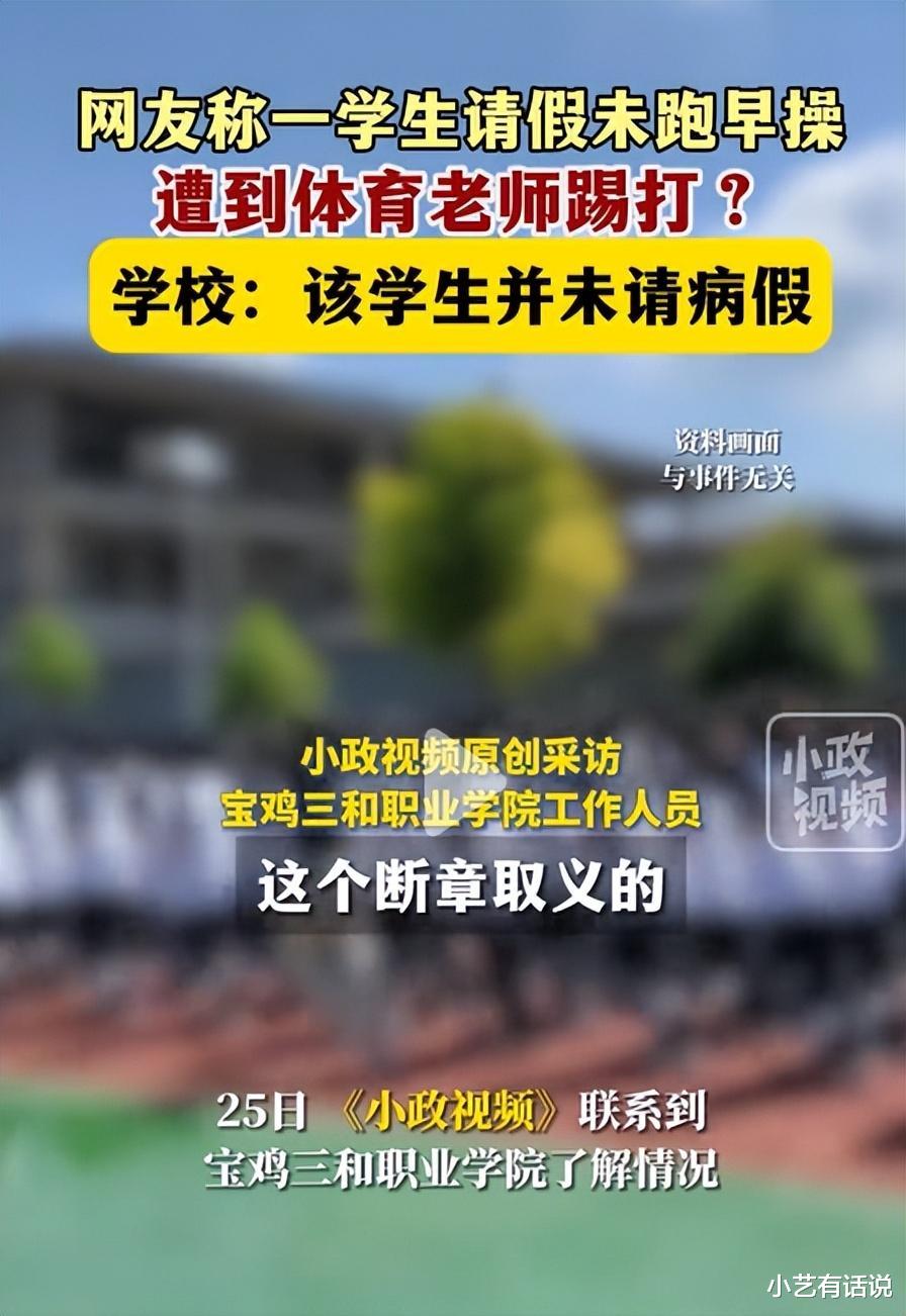 校方表示:该男同学是没有请假也没有好好出操,体育老师口头教育,他还骂老师,然后才是打架。