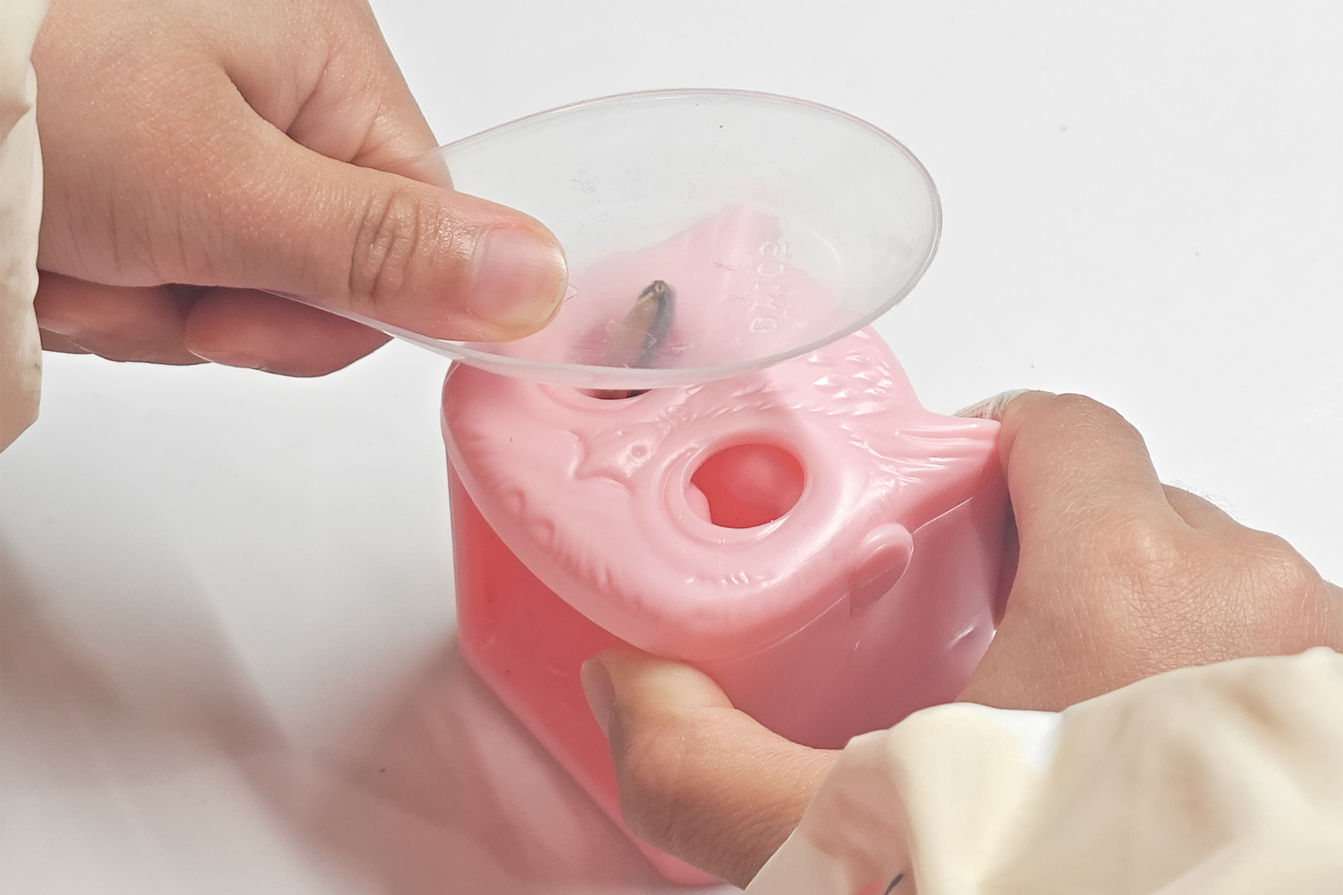 我让家里小娃这么尝试,才能勉强把瓜子下压进去。这么需要额外工具来配合这个剥壳工具使用,还是不太方便。