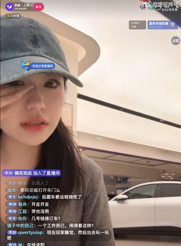 极越上海五角场合生汇体验店一位卖车的女主播在直播间中哭诉,听到失业的消息后“气炸了”,只是想通过直播间讨个说法,公司没有任何声明,太过分了。
