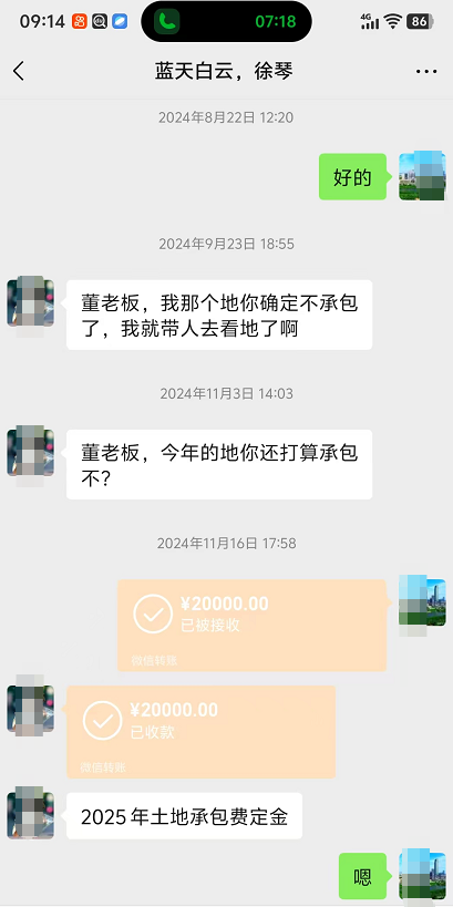 面对董金山的质疑与村委会终止不合规合同的决议,徐琴一方并未收敛。董金山提供的材料显示,2024年12月6日,团结村村民委员会已依据上级文件精神召开会议,决定终止包括涉案合同在内的多项不合规承包合同,并免除徐琴当年租金。然而,徐琴无视该决定,仍主张相关权利。