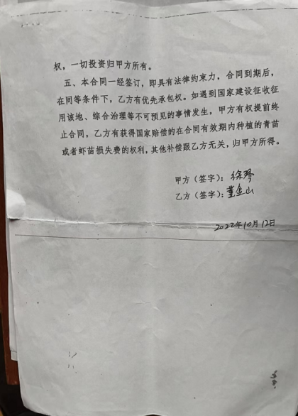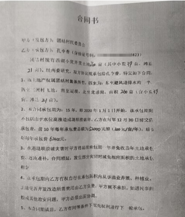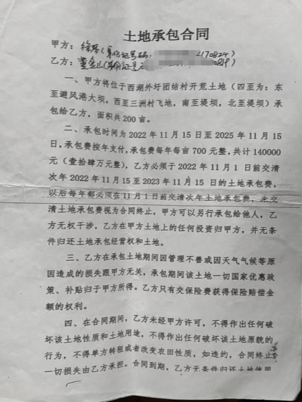 事情的源头可追溯至2019年。徐琴的母亲孔某香以每亩200元的低价承包了团结村260亩土地,租期长达15年,且合同约定若孔某香去世,由其女婿赵某华(徐琴丈夫)继续履行。董金山质疑该合同未经过公开招标或民主决策程序,存在严重的合规性漏洞。