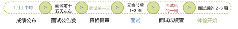 从全流程的设计上来看,笔试的成绩公布近几年都在1月7~15日左右公布,也就意味着,考生在笔试考完后,有近40~45天的时间来进行笔试复盘、其他考试考试或面试准备的,因此需要考生静下心来对照往年进面分数,思考下一步的备考计划和安排。