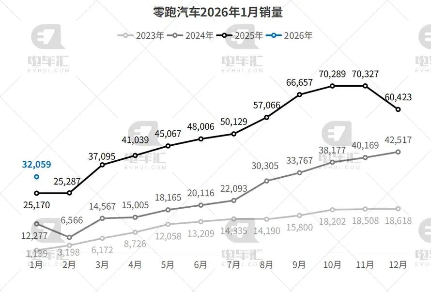 零跑汽车1月销量为32,059辆,环比下降46.9%,同比增长27.4%。LEAP 3.5架构车型持续贡献增量,品牌在主流市场稳步扩张。