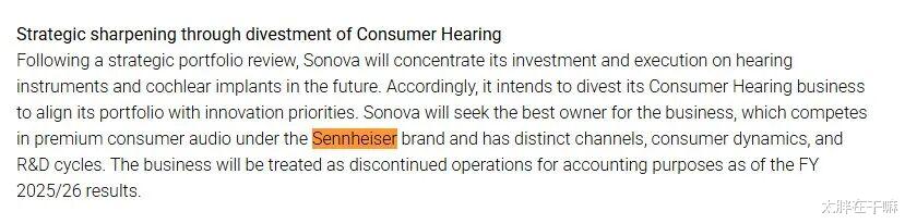 2026年3月23日,全球助听器巨头索诺瓦(Sonova)官宣计划剥离森海塞尔消费者级业务。