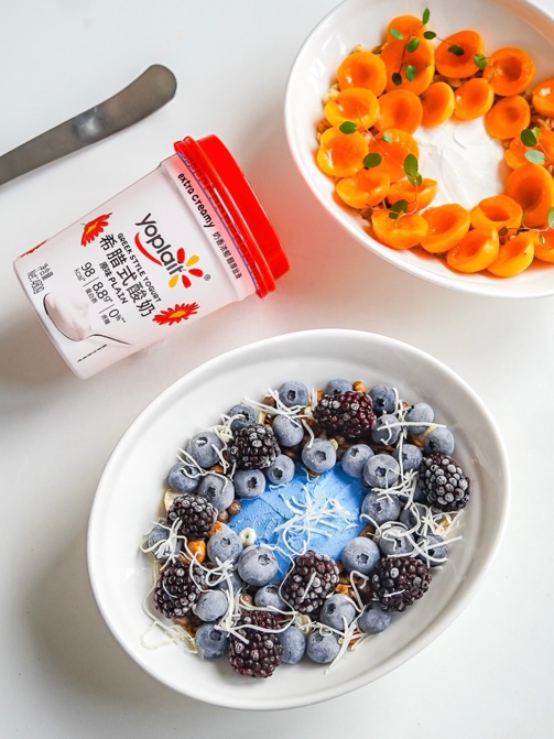 优诺蓝莓/白桃风味希腊酸奶:高蛋白饮食的温和入口