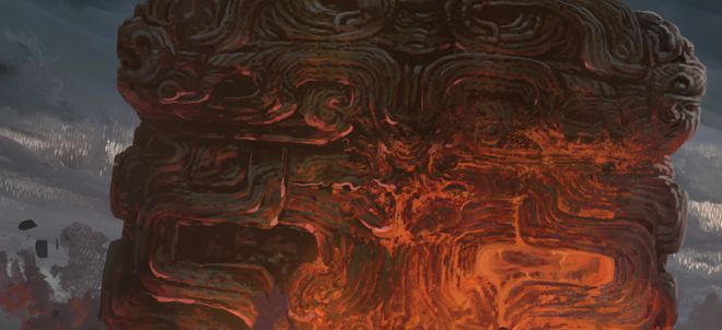 XRCG:有的。是金箍棒,它的难点在于材质的区分,它本身是金属材质,但是环境是阴天,所以金属的高光和反光会不太明显。下半部分被熔岩覆盖,是火焰自发光的效果。前期过于注重熔岩的部分,使得上半部分在背光下显得比较像石头。但金属的固有色和金属材质在背光里面又不好表现得太强,在更像石头还是更像金属之间要去找一个合适的度达到平衡,让画面看起来更协调。
