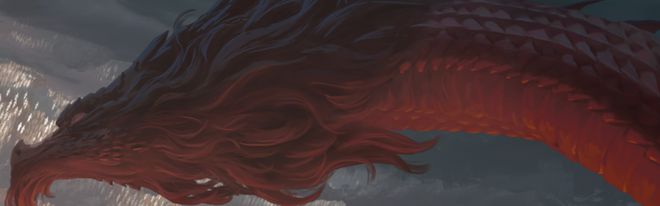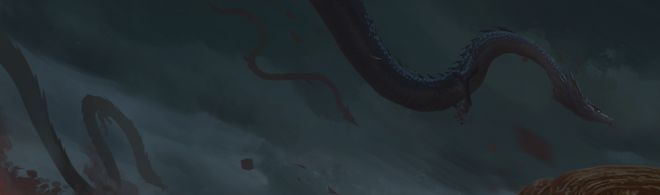 XRCG:设定上天空飞行的九条龙颜色都是不一样的,但因为这次场景是阴天,海底又有发出强烈红光的岩浆,使得龙的色彩本身不是特别好处理。在把固有色画得比较明显时,龙就会有一种拼贴感,融不进场景里面去。最终为了追求画面整体效果协调,统一对龙的固有色做了弱化,只让他们隐约有固有色区分,更多还是服从于其所在位置的色光以及大气透视。