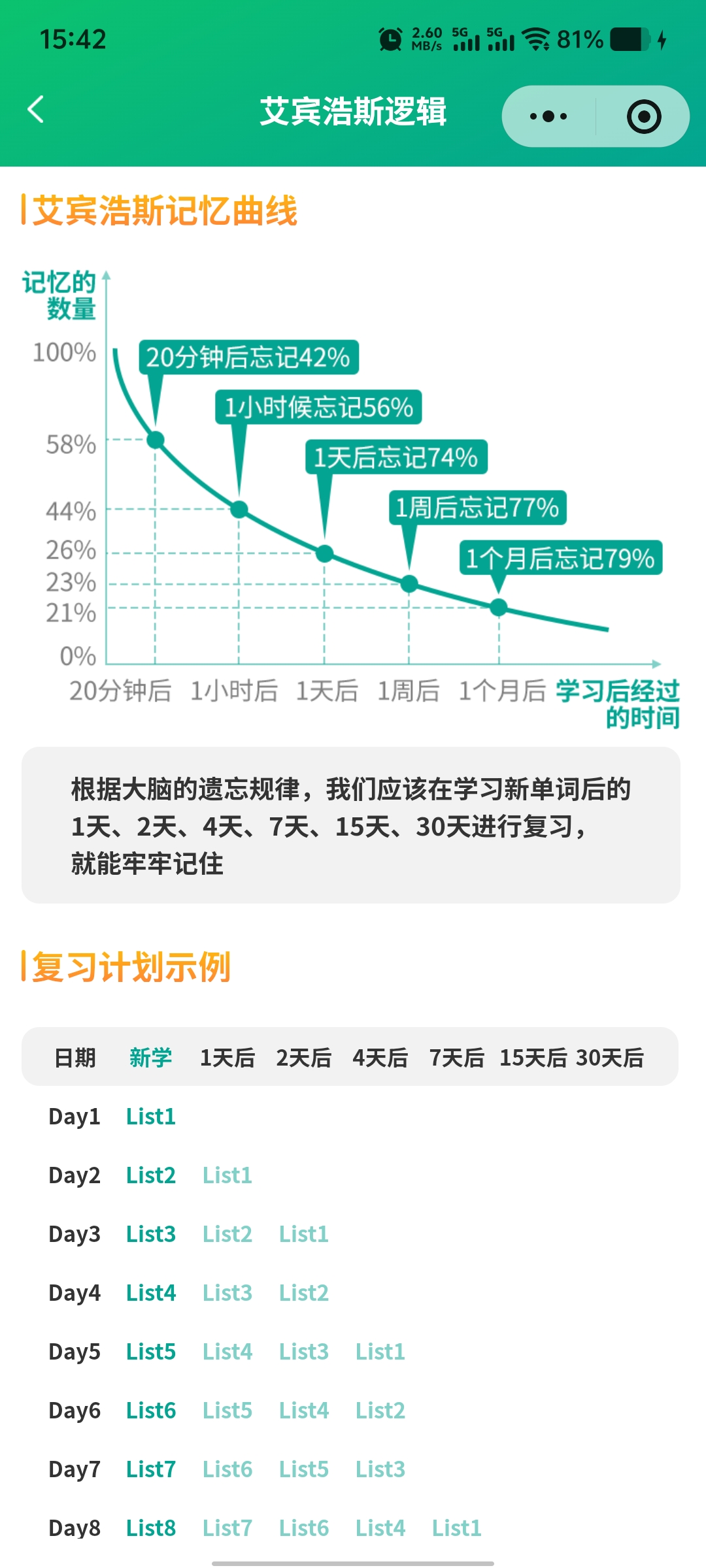 对于记了又忘的问题,它依据艾宾浩斯记忆曲线安排复习节点,在容易遗忘的阶段自动推送复习,这一点对巩固记忆可能有帮助。