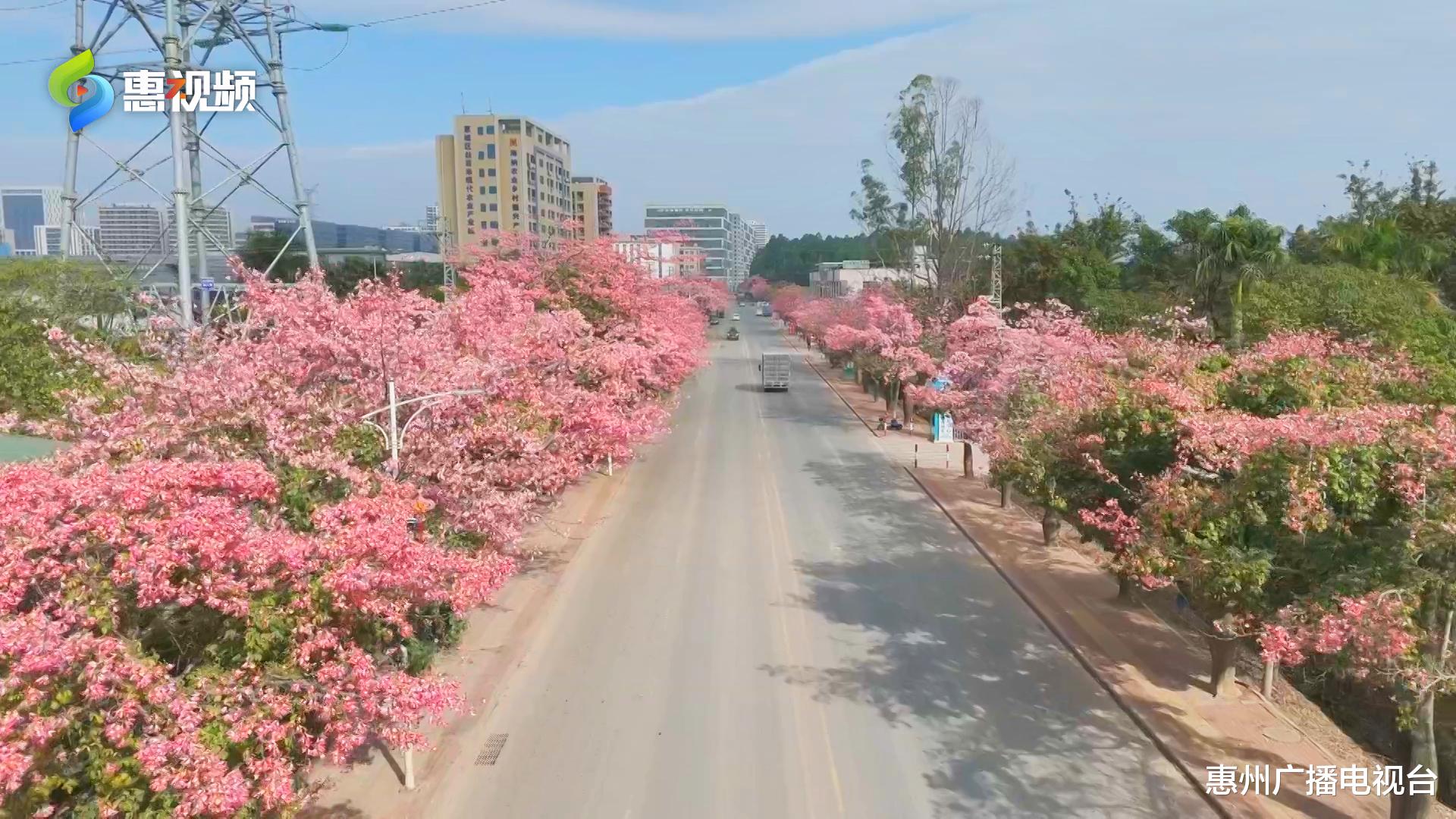 惠城区的一条道路悄然披上“粉装”