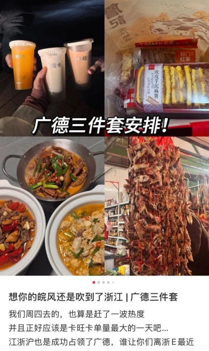 官方也很懂“借势”:文旅部门发布“广德三件套打卡指南”,标注门店、景点、停车场位置;寻找“第一个提出三件套的网友”,引发互动;甚至推出“打卡护照”,游客集齐章就能换小礼物。这种“官方引导+民间自发”的传播模式,让广德的热度持续发酵。