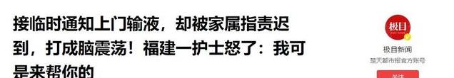 事情发生在11月12日,福建南平建瓯市龙村卫生院的护士葛女士在家庭医生签约服务的途中接到领导通知,需前往原村支书家帮忙为其母亲输液。