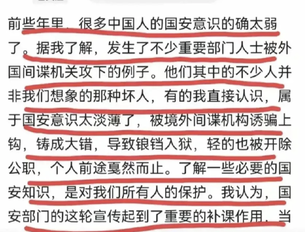 最近胡锡进这位“专家学者”公然在社交媒体上替间谍叫屈,以理中客的身份说出:间谍并不一定全是坏人这种逆天言论引起舆论哗然,其主动发文表示知道其交谈的外国人是间谍官员和认识某些泄密者(间谍),还说这些泄密者(间谍)只是国安意识淡薄....。拜托,先不说举报间谍是中国公民应尽的义务,就说了能成为泄密者(间谍)也是需要条件的,其从事的工作和任职部门必须对我国很重要甚至属于机密。一旦泄密,必然对我国的经济发展、科技技术、军事、政策等等有着举足轻重的负面影响和冲击。