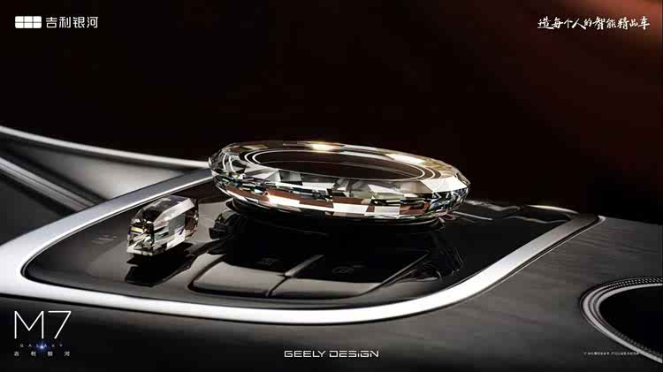 外观部分,银河M7采用家族式设计,灯组造型和M9也很像,只是在灯组内部结构有所不同,车标位于贯穿灯带之下,车头两侧有导流槽,下方为梯形进气口。