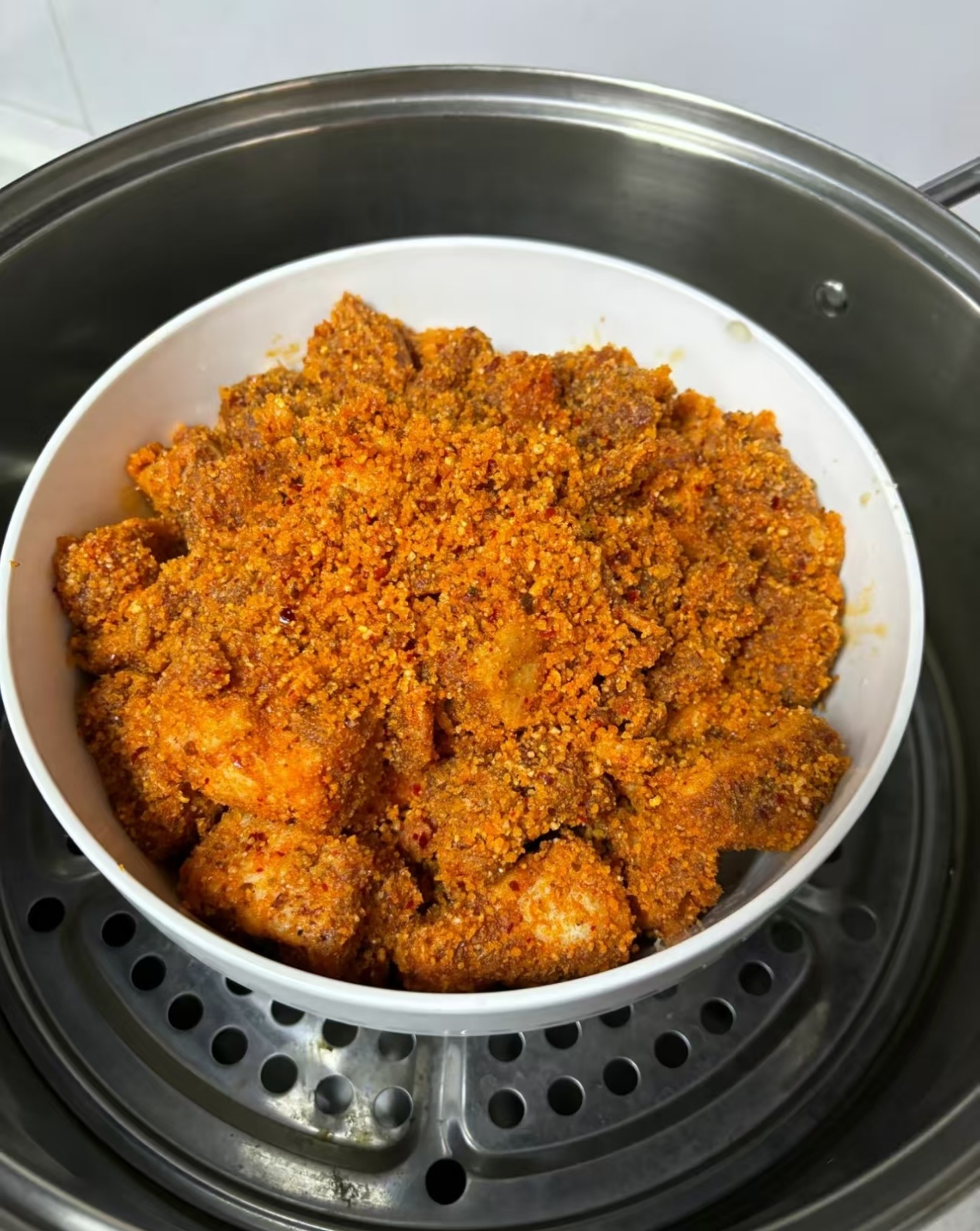谁说酥脆只能油炸?今天咱们让排骨“洗”个桑拿,照样嘎嘣脆!粉蒸排骨听起来像饭店大菜,其实家常到离谱:腌一腌、裹一裹、蒸一蒸,30分钟后,锅盖一掀,米香混着肉香像爆米花“嘭”地炸开,排骨外圈裹着金黄酥粒,咬开却嫩到流汁,连隔壁加班的狗都闻着味蹲门口了。全程不用一滴油,厨房不留硝烟,只剩“咔嚓咔嚓”的咀嚼声,减肥党也能大胆冲!