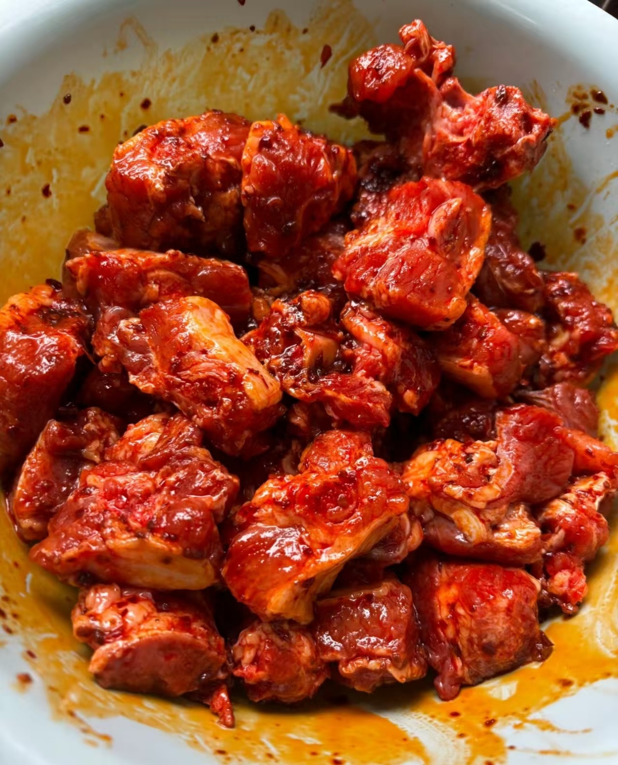 腌肉是灵魂。姜蒜剁末,和豆瓣一起下锅,小火炒30秒,红油“嘶啦”一声冒出,连厨房灯泡都像加了滤镜。把炒好的酱倒进排骨,加料酒、生抽、老抽、腐乳汁、糖、白胡椒,戴手套抓抓抓,让每根排骨都滚上红亮亮的“麻辣面膜”。盖保鲜膜冷藏30分钟,时间紧也至少15分钟,让味道开个“圆桌会议”,别急着下一步,耐心是酥脆的前奏。