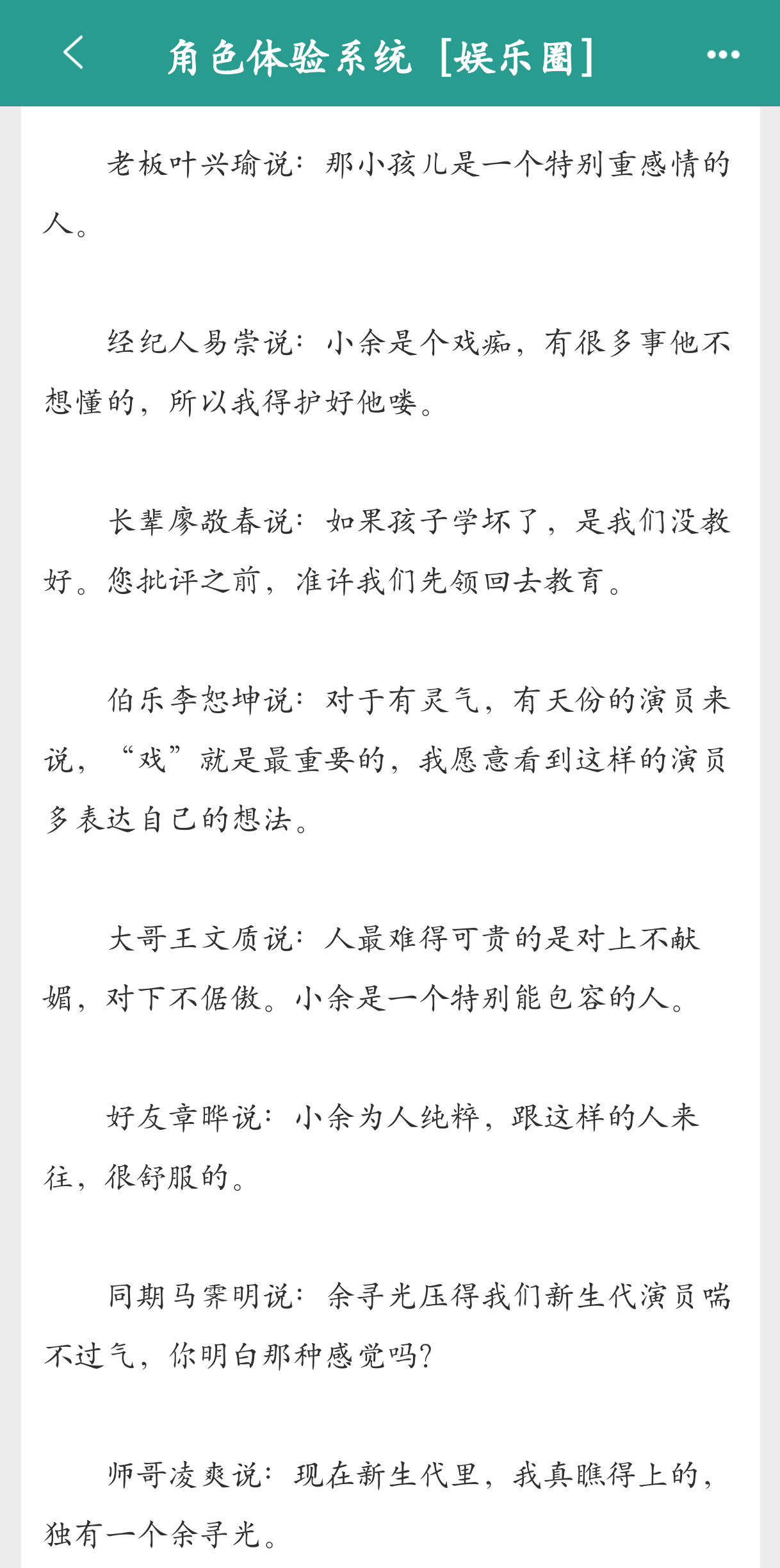 在这个过程中,主角一边顺理成章地使用系统的功能来增强自己,一边抱着“即便没有系统我也会演戏”的态度去对待每一份工作,不得不说这种观点让我耳目一新,十分欣赏。