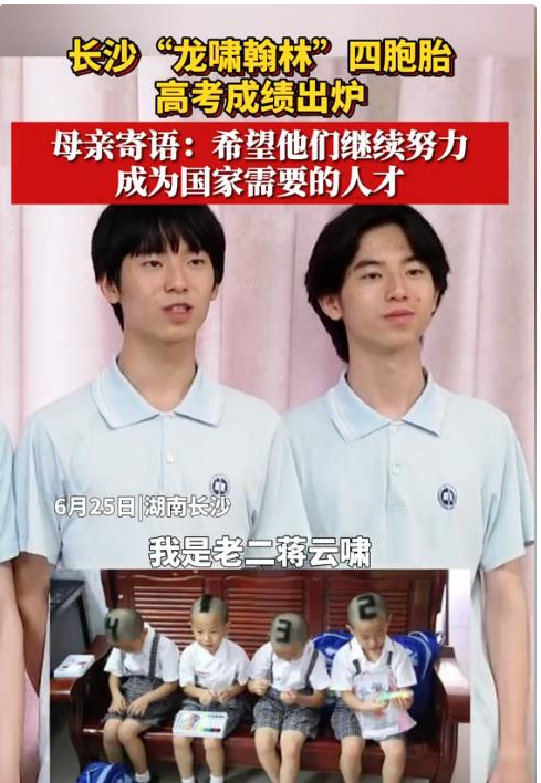 近日,湖南长沙“龙啸翰林”四胞胎兄弟的高考成绩引发了全国关注。