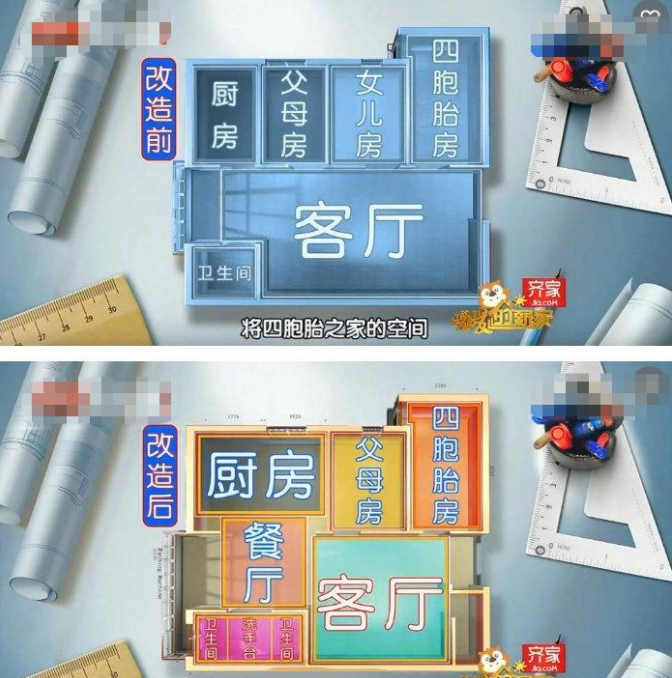 节目中,设计师原本计划将60平米的三居室改造成更宽敞的格局,却在施工过程中得知家里还有一个姐姐。