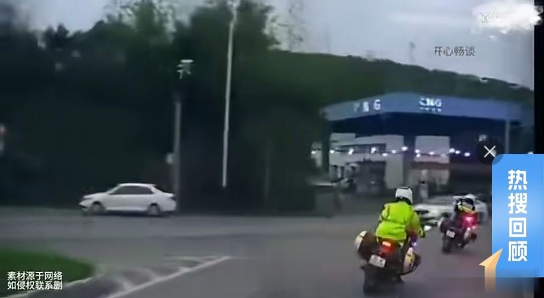 一共三个交警骑上摩托车飞一样的速度,边跑边喊前方车辆靠边,警笛拉响一路狂奔,边跑还边往后看这白车跟上没有。