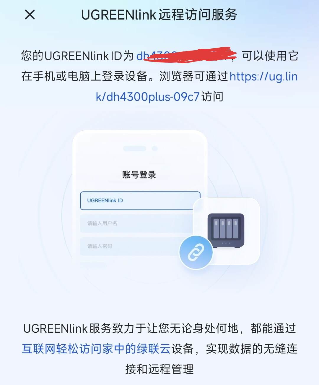 NAS要是只能在家用,价值就少了一大半。绿联用了个叫UGLink的内网穿透服务,把“远程访问”这个老大难问题给解决了——咱不用懂什么公网IP,在系统里点一下“开启”,就能拿到一个专属的“秘密通道”。