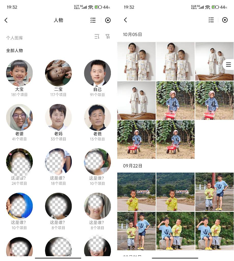 支持JPG、JPEG、 PNG、GIF、 BMP、 WEBP、HEIC、HEIF等多种格式照片预览。当照片自动备份到绿联DH4300 Plus以后,相册会自动识别人脸,根据人脸自动创建个人专属相册,准确率高得吓人,哪怕戴着帽子都能精准对上。